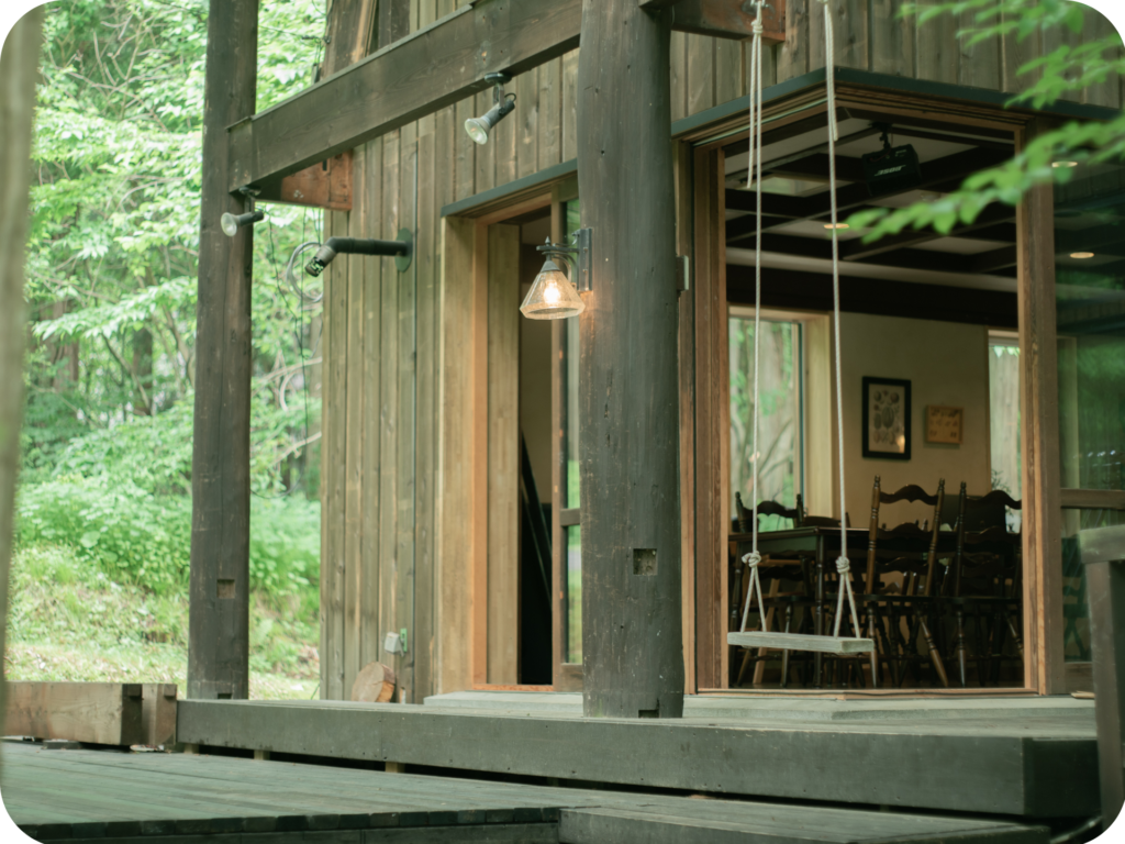白馬で遊ぶ拠点として、山小屋のように滞在。館内で使用するエネルギーは再生可能エネルギー。
